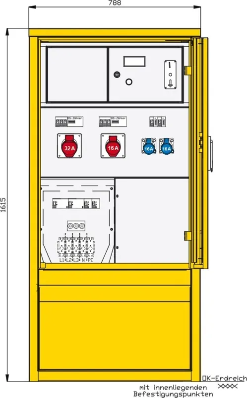 Hersteller:Walther WerkeBezeichnung:Kassiersäule 5 RCDs TypATyp:82178300Ausführung:EndverteilerschrankBemessungsspannung:230/400 VBemessungsstrom:63 AAnschlussleistung:44 kVAAnzahl der CEE-Steckdosen 16 A / 230 V / 3-polig:2Anzahl der CEE-Steckdosen 16 A / 400 V / 4-polig:1Anzahl der CEE-Steckdosen 32 A / 230 V / 4-polig:1Hauptschalter:DIIIHauptschalter-Bemessungsstrom:63 AAnzahl der Pole Hauptschalter:3Anzahl der Leitungsschutzschalter:4Fehlerstrom-Typ:AAnzahl der Fehlerstrom-Schutzschalter 30 mA:5Notschalter:neinSchutzart (IP):IP44Geeignet nach IEC/EN 61439-4:neinWerkstoff des Gehäuses:sonstigeBreite:788 mmHöhe:1615 mmTiefe:360 mm
