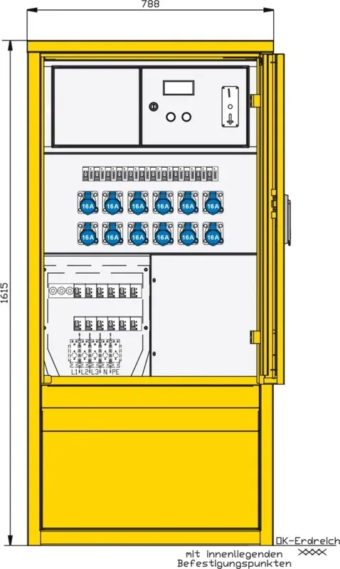 Hersteller:Walther WerkeBezeichnung:Kassiersäule 13 RCDs TypATyp:82178200Ausführung:EndverteilerschrankBemessungsspannung:230 VBemessungsstrom:63 AAnschlussleistung:44 kVAAnzahl der CEE-Steckdosen 16 A / 230 V / 3-polig:12Hauptschalter:DIIIHauptschalter-Bemessungsstrom:63 AAnzahl der Pole Hauptschalter:3Anzahl der Leitungsschutzschalter:12Fehlerstrom-Typ:AAnzahl der Fehlerstrom-Schutzschalter 30 mA:13Notschalter:neinSchutzart (IP):IP44Geeignet nach IEC/EN 61439-4:neinWerkstoff des Gehäuses:sonstigeBreite:788 mmHöhe:1615 mmTiefe:360 mm
