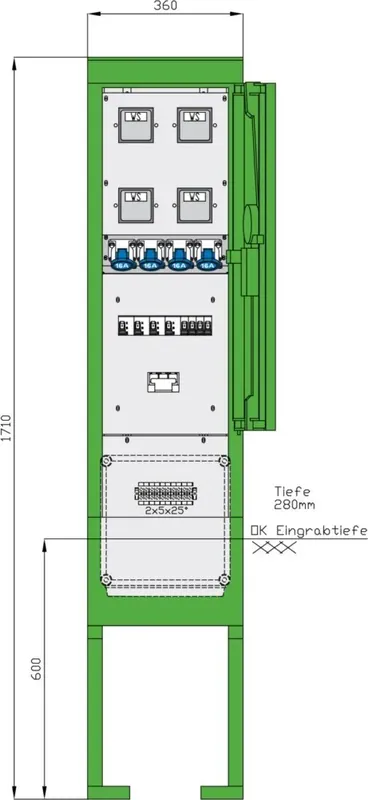Hersteller:Walther WerkeBezeichnung:Stromverteiler 4 RCDs TypATyp:84020150Ausführung:VerteilerschrankBemessungsspannung:230 VBemessungsstrom:35 AAnschlussleistung:24 kVAAnzahl der CEE-Steckdosen 16 A / 230 V / 3-polig:4Hauptschalter:DIIIHauptschalter-Bemessungsstrom:35 AAnzahl der Pole Hauptschalter:4Anzahl der Leitungsschutzschalter:4Fehlerstrom-Typ:AAnzahl der Fehlerstrom-Schutzschalter 30 mA:4Notschalter:neinSchutzart (IP):IP44Geeignet nach IEC/EN 61439-4:neinWerkstoff des Gehäuses:KunststoffBreite:360 mmHöhe:1100 mmTiefe:280 mm
